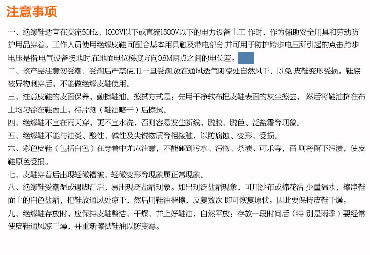 Часто некоторые менеджеры с недостаточными электрическими знаниями ошибочно считают, что в диапазоне приложений неверно считают, что утепленная кожаная обувь 5 кВ неверна. Это неправильно.В управлении электрической безопасностью инструменты изоляции разделены на основные инструменты безопасности и вспомогательную безопасную посуду.Таким образом, названное базовое безопасное поселение относится к прочности изоляции, достаточна для противодействия безопасному использованию электрического использования напряжения, такого как изоляционные стержни, изоляционные зажимы, платформы изоляции (лестницы).Вспомогательная безопасная посуда относятся к электрическому рабочим напряжению. В электрических операциях он не может быть подключен к полосой -в -стрипной части с основными безопасными приборами (такими как изоляционные прокладки, изоляционная обувь).Но это может предотвратить вред пошагового напряжения личному.Изоляционная кожаная обувь и изоляция ткани в основном применяются ниже 1000 В промышленной частоты в качестве вспомогательной технической техники.