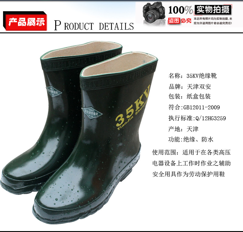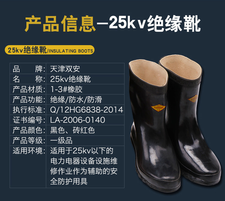 Тяньцзинь Шуанган Электрик Высоковольтные изолированные ботинки 5/15/25/35 кВ Охрана труда Защитная обувь Нескользящие изолированные дождевые сапоги Резиновая обувь