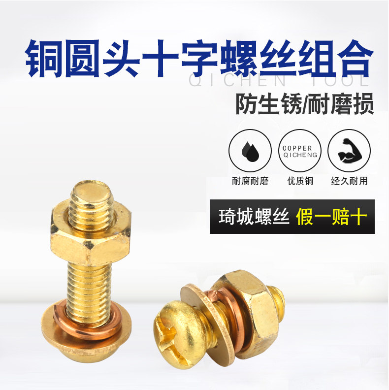 Медная круглая головка скрещенной винтовой гайки установленная латунная пластина плоская головка плоская подушка винт.