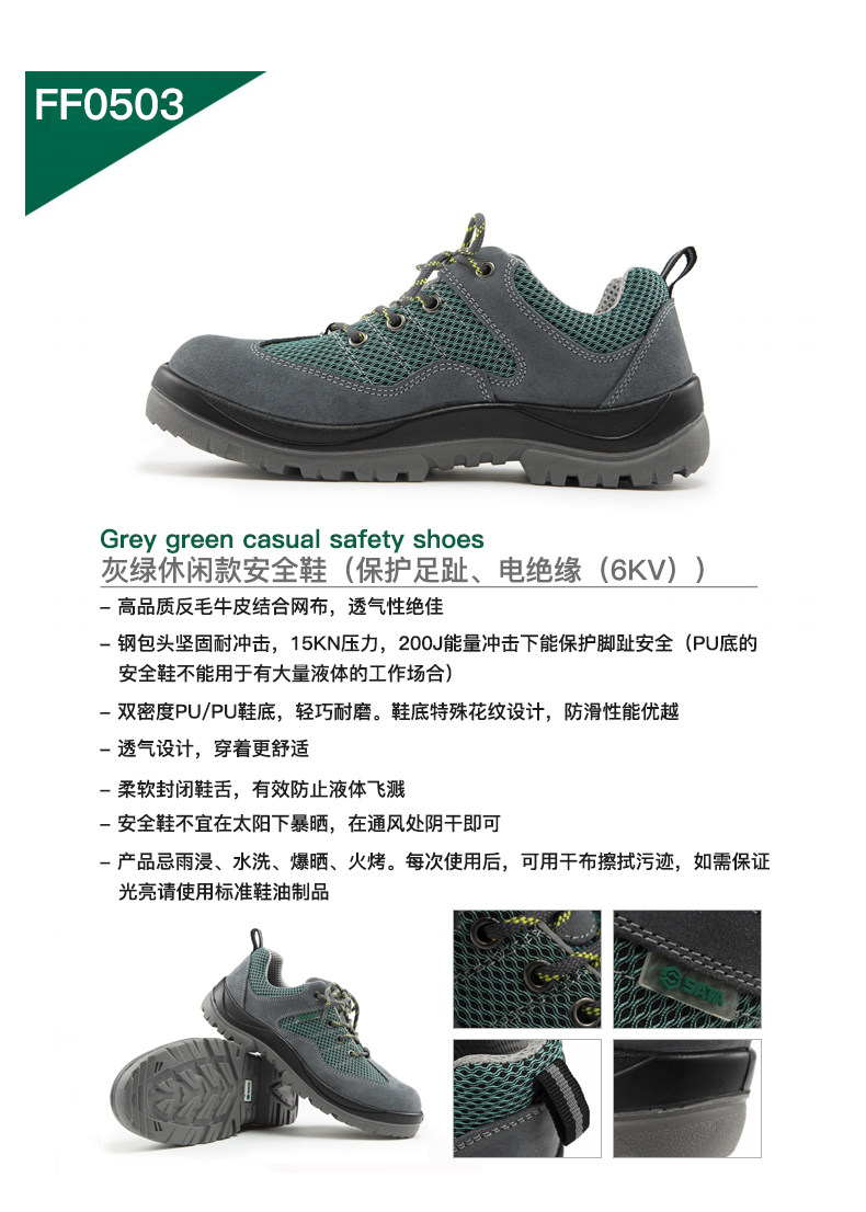 - FF0502/серо -зеленая безопасная обувь для отдыха (защита пальцев, антистатические)