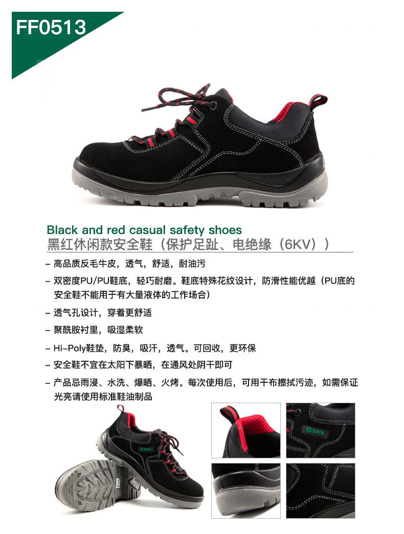 - FF0513/Black и Red Leisure Safety Safety Safety Shoes (защита пальцев ног, электрическая изоляция (6 кВ))