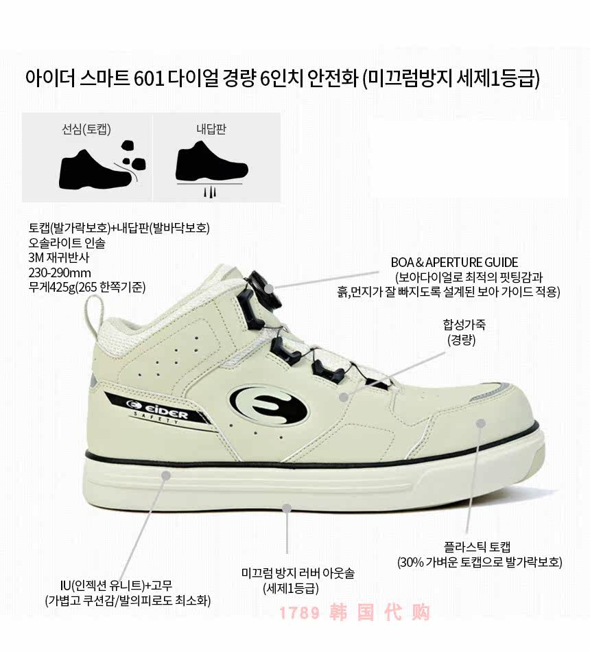 EIDER SAFETY SMART 601-W3 Строительная площадка Строительная страховая страховая обувь для обуви безопасности 230-290