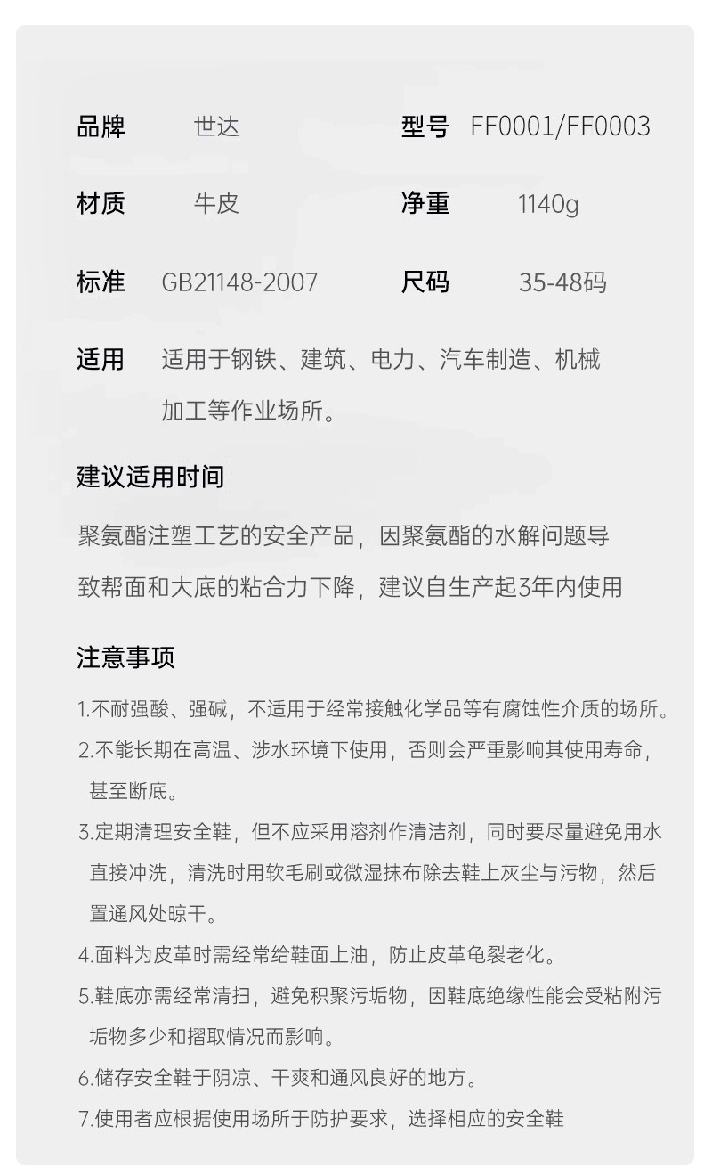 | Цвет: | FF0001 [Модель четыре сезона] Антисмаширование и прокола, FF0003 [Модель Four Seasons] Антимаширование и электрическая изоляция, FF0501 [дышащая модель] антисмешивание и прокола, FF0502 [дышащая модель] антисмешивающая и антистатическая, FF0503 [дышащая модель] антисмешивание и электрическая изоляция, FF0714 [дышащая модель] антисмашивая, анти-спиннинг, анти-скольжение, FF0712 [дышащая модель] антисмешивающая, анти-прямая, антистатическая, анти-скольжение, FF0521 [Летняя модель] Антимаширование и прокола, FF0802 [Многофункциональная модель] антисмашивая, анти-спиннинг, анти-скольжение, FF0704 [Профессиональная анти-скольжение] против шлюха, анти-шлюзовая, анти-скользящая изоляция, анти-скольжение |