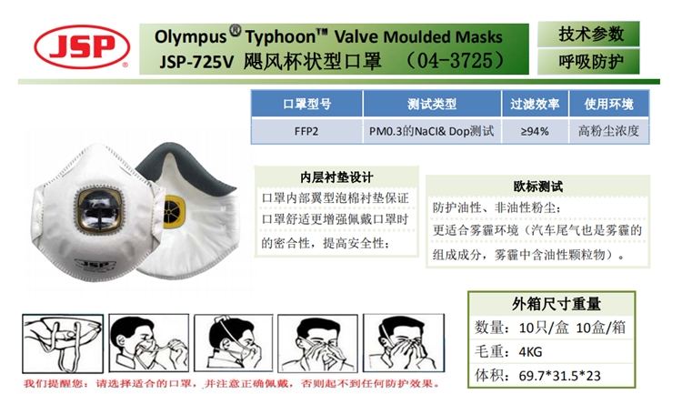 JSP очищение 725 В чашки -взыстания масла -полос, сварка, пыль, краска FFP2/KN95