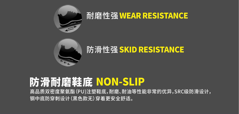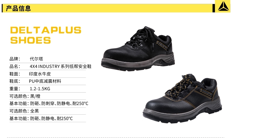 4&Times; 4 отраслевая серия обуви с низкой топовой защитой, индийские щенки, верхняя часть PU MidsolePanoshock®Амортизационный материал, резиновая подошва, антисмаширование, прокола, антистатическаяЭлектричество, износостойкость, устойчивость к маслам, слабая кислота и щелочи,SRCКласс не -сковип, устойчивый250 ℃Высокая температура, безопасность и комфорт.