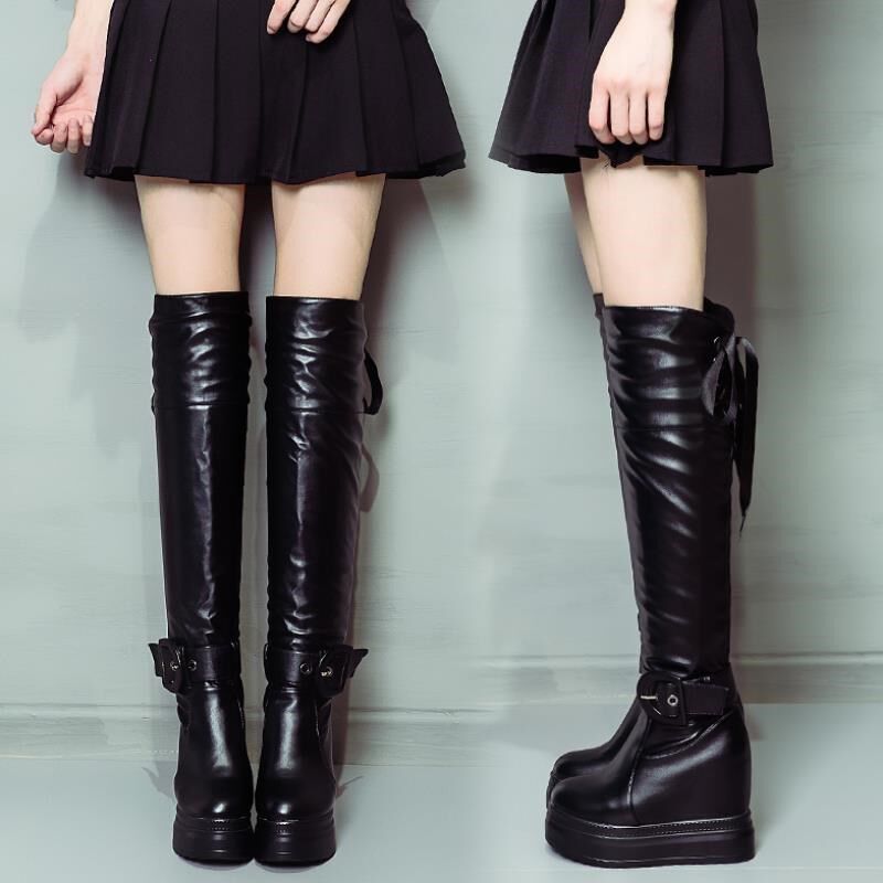 Ботинки, высокие высокие сапоги, универсальные туфли на высоком каблуке на платформе, 2020, по фигуре