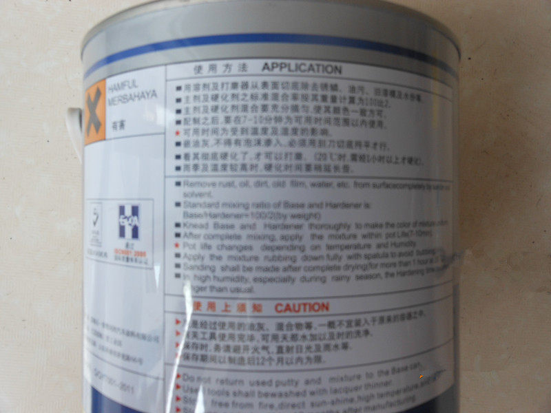 Он широко используется в поверхностных покрытиях, таких как автомобили, корабли, механизм, мебель и внутреннее украшение, чтобы заполнить более глубокие ямы поверхности.