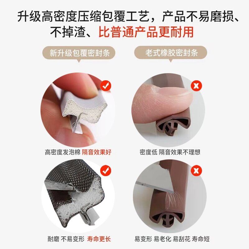 Плоская дверь для спальни, входная деревянная дверь, встроенная полоса для предотвращения столкновений, прорезь, бесшумная ветрозащитная уплотнительная лента для дверного шва