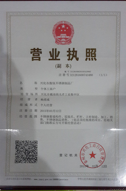Сингхуа город АО -Титан из нержавеющей стали завода изделия из нержавеющей стали является профессиональным производителем продуктов из нержавеющей стали, таких как развитие, развитие и точечные аксессуары для поддержания точек производства, опровержение суставов, опровержение когтей и перила поручений.Эта компания имеет долгую историю, богатый опыт и сильная сила. Она является одним из ведущих предприятий в разработке, разработке и производстве продуктов из нержавеющей стали в Китае. Отличные профессиональные таланты, идеальное обеспечение качества.Придерживаясь сильной силы и передовых технологий предприятий, создание научного механизма управления и эксплуатации и сильной рыночной системы, есть строгая команда управления, отличные профессиональные таланты, выжили с качеством в течение многих лет и развиваются честно.Удостоит исследование и разработку стеклянных декоративных когтей, опровергать детали, тяги, опоры, лестничные колонны, а также фланцы и трубопроводы из нержавеющей стали, а также получили ряд домашних и иностранных сертификатов безопасности и управления.С гибким и изменчивым дизайном, с прямым взглядом, он дает тенденцию архитектуры.От материалов продукта, до проекта, вся промышленная сеть производства и производства завершается независимо. Проданные продукты поставляются заводскими терминалами. Система вспомогательной поддержки с характерным и устойчивым развитием завоевала пользу клиентов.Продукты хорошо сочетаются по всей стране и экспортируются в Юго -Восточную Азию, такие как Япония и Южная Корея.Эта компания придерживается"Занимайте рынок с качеством, завоевывает доверие к клиентам, развивается с бутиком и создайте будущее с помощью науки и технологий"Философия бизнеса.следовать"С качественными корнями, ориентированной на веру, прагматичным поиском правды, взаимной выгоды и победы"Принципы внутренней содействия корпоративной культуре, распространение духа предприятий за пределами внешнего мира, постоянно оптимизировать управление предприятиями, постоянно улучшая качество продукта, постоянно улучшая корпоративные бренды и активно создавая отличную нержавеющую сталь с гордыми характеристиками титана ...