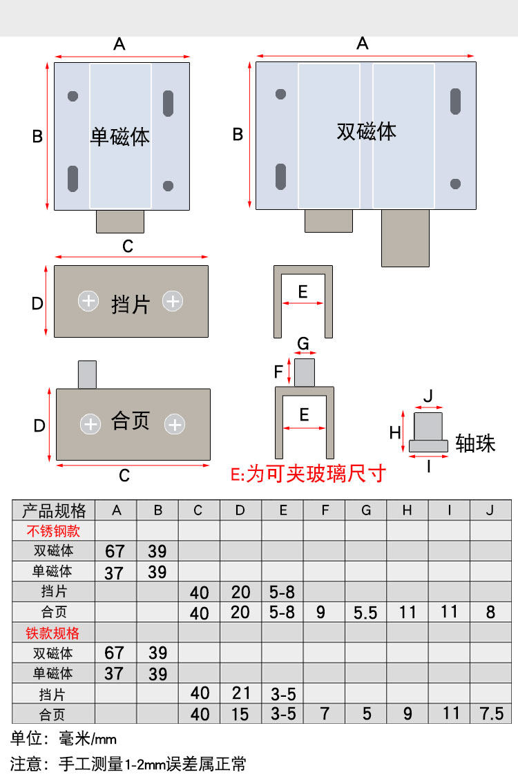 | Цвет: | Магнитный зажим из нержавеющей стали из нержавеющей стали (клип 5-8 мм), Двудородный магнитный зажим из нержавеющей стали (зажима 5-8 мм), Стеклянная дверь шарнир (клип 5-8), Магнитное и деление (клип 5-8), Магнитный зажим с двойной дверью железа (3-5 мм), Магнитный зажим для одной двери железа (3-5 мм зажима), Двойные магниты и щиты (клип 5-8), Двойной магнитный, Мономер |