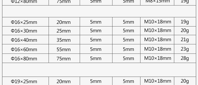 | Цвет: | Диаметр φ12 × общая высота 20 мм, Диаметр φ12 × общая высота 25 мм, Диаметр φ12 × общая высота 30 мм, Диаметр φ12 × общая высота 40 мм, Диаметр φ12 × общая высота 50 мм, Диаметр φ12 × общая высота 60 мм, Диаметр φ12 × общая высота 70 мм, Диаметр φ12 × общая высота 80 мм, Диаметр φ12 × общая высота 100 мм, Диаметр φ12 × общая высота 120 мм, Диаметр φ12 × общая высота 150 мм, Диаметр φ 12*25 (удлиненный 25 мм), Диаметр φ 12*30 (увеличение 25 мм), Длинный, 40, 25mm |
