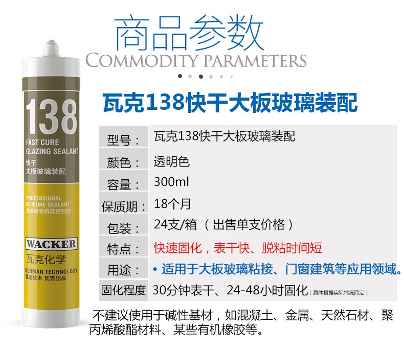 - Кислотное быстросохнущее крупнолистовое стекло - WACKER 138 Прозрачное