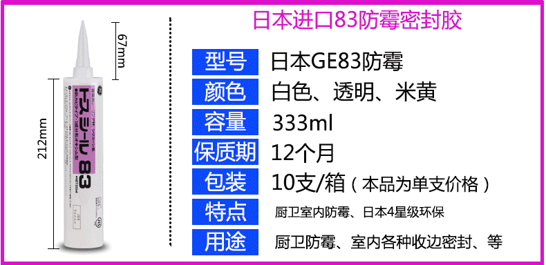 Япония импортированная GE Toshiba 83 Нейтральная плесень -Проницаемый герметичный силиконовый стеклянный клей длинный эффект, а также анти -мульчавовая и черная и водонепроницаемая