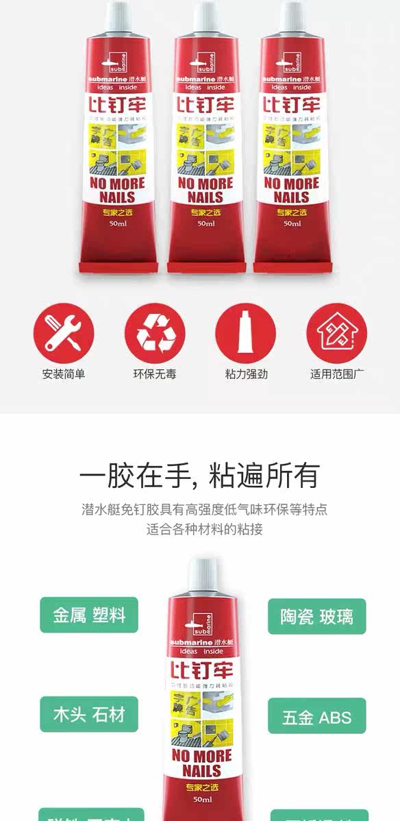 Подводная лодка -без клей, мощные клейкие плитки, неживая структура, клейкая жидкость, чем гвоздь.