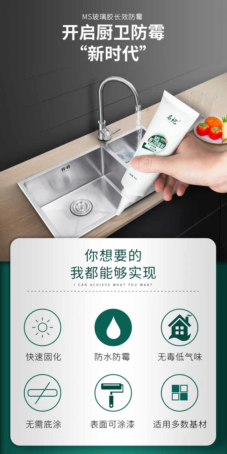 Стеклянный клей, водонепроницаемая плесень, антимолд, кухня и ванная комната для дома