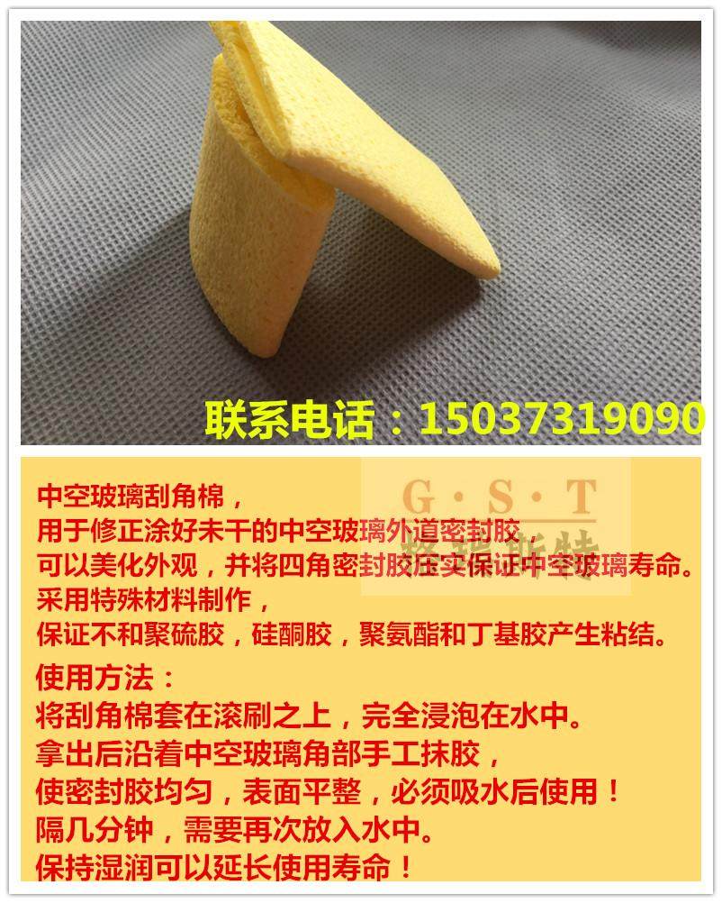 Для герметизации каждого большого стакана герметизирующий клей стеклянного угла расслаблен. Он не силен. Поверхность герметичного клея необходимо обработать, чтобы сделать внутреннюю сильную и плоскую.Тем не менее, герметизация полого стекла, как правило, очень липкое. Используется уголок общего материала. Герметирующий клей будет прилипать к гелевому материалу.Наша гелевая губка изготовлена из специальных материалов, которые не будут прилиплены к обычно используемому половому стеклянному уплотнению, таким как полисульфонит, силиконовая жевательная резинка, полиуретин и бутиловая камедь.Эта губка делает жевательную резинку чистой.Клей ручной работы вдоль полого стеклянного угла сделайте уплотнительный клей равномерный, а поверхность плоская.Гельская губка с инструментом портативного ролика может повысить эффективность работы.