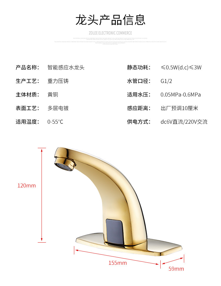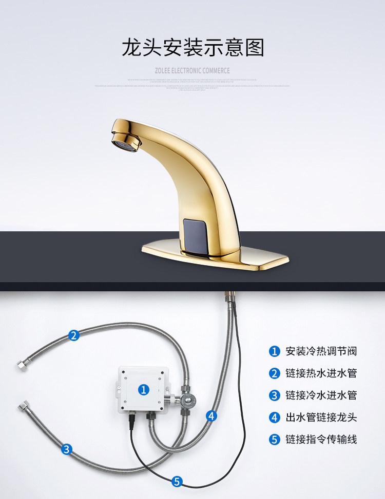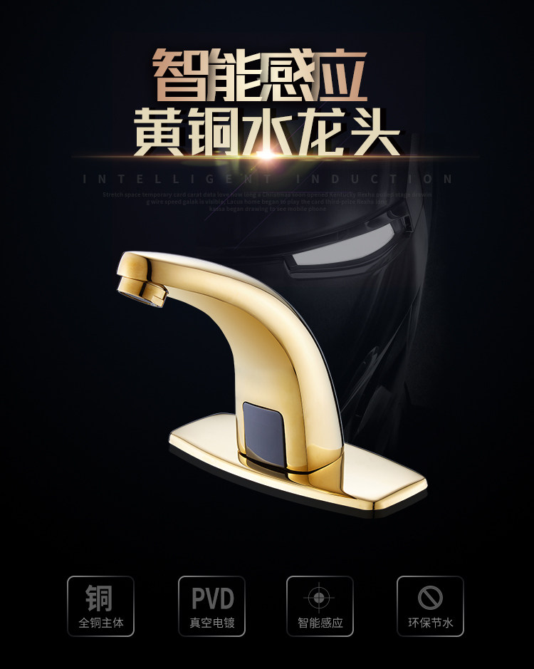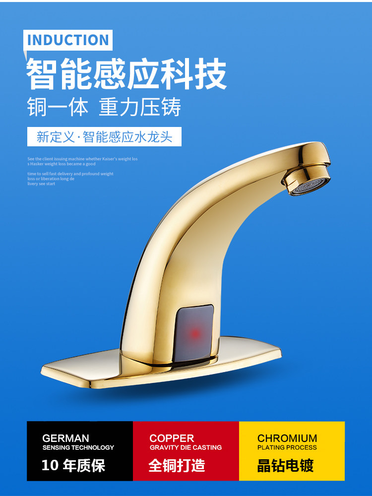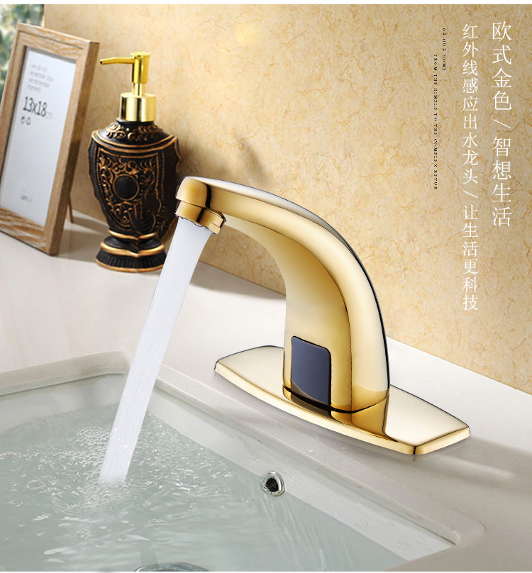 Полный медный золотой антикварный датчик водопровод с одним холодным и холодным полностью автоматическим интеллектуальным инфракрасным бассейн