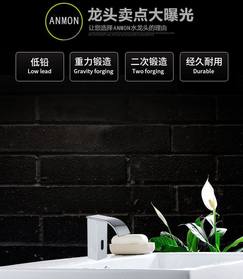 Anmon Медный водопад -тип Полностью автоматический датчик смеситель смарт -индукция