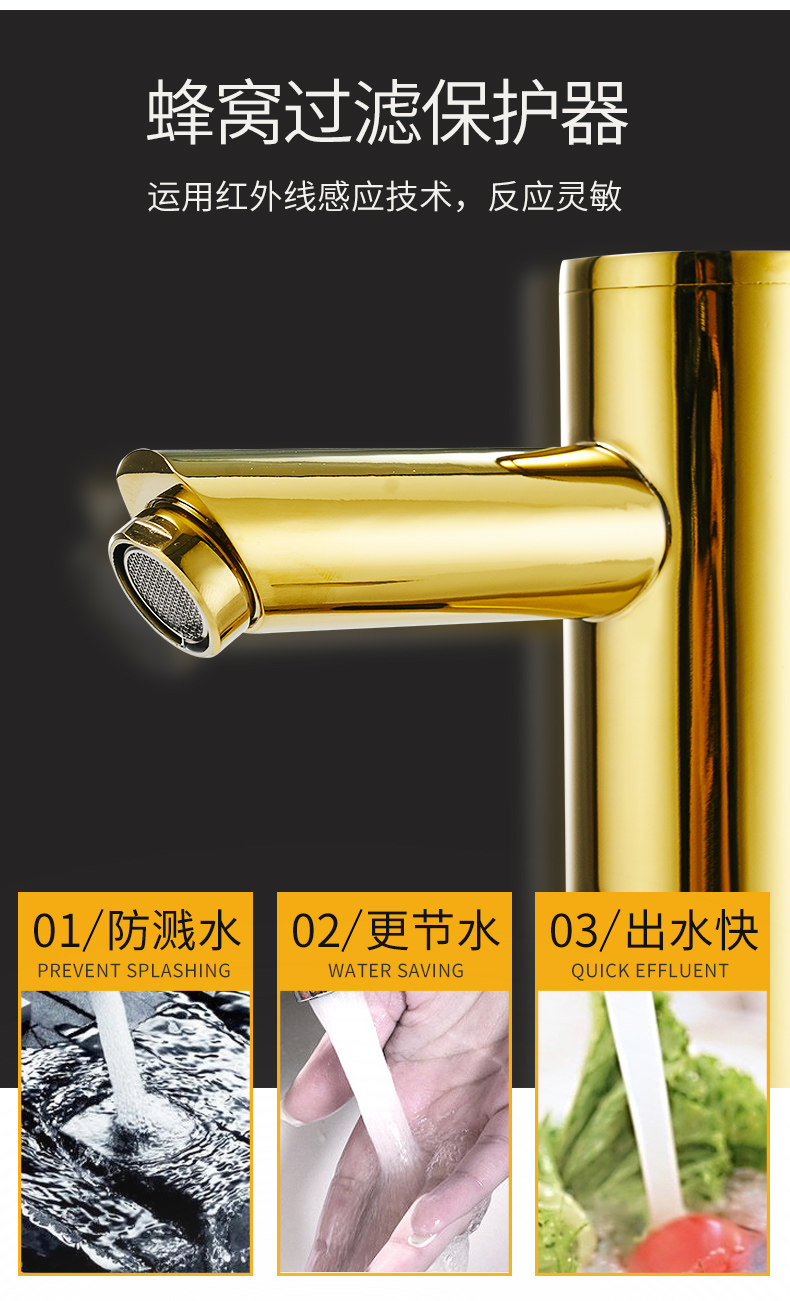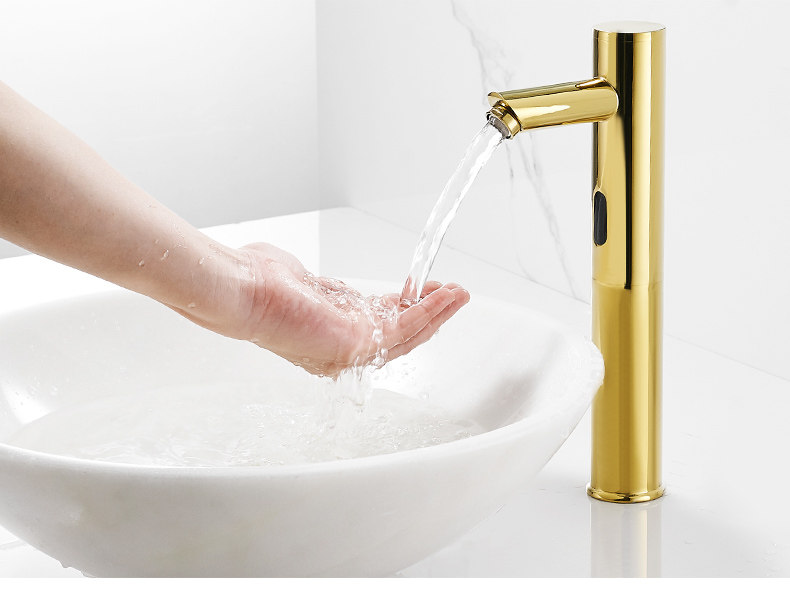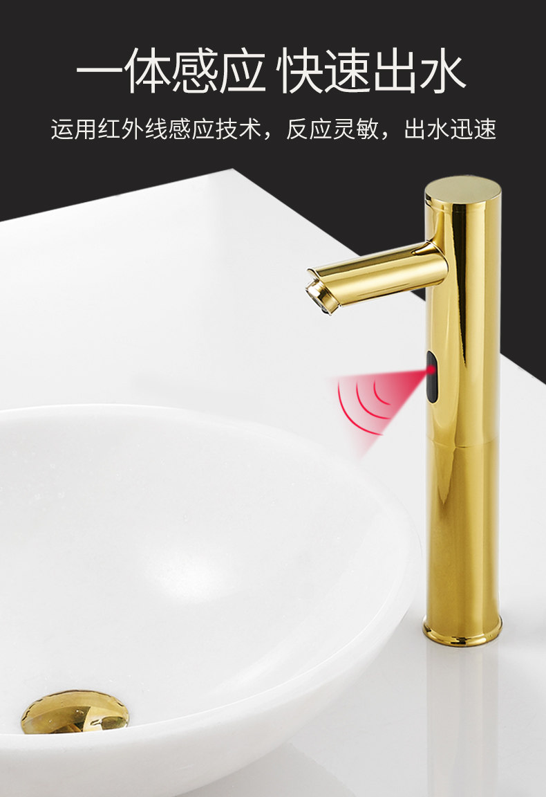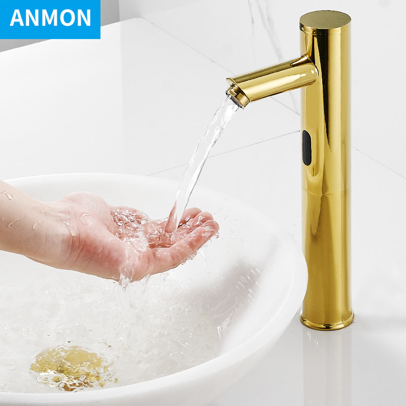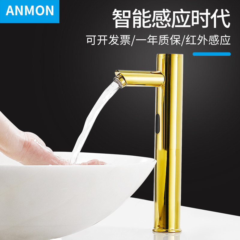 Анмон Полностью автоматический индукционный водный кран Полный медный золото -розовый смарт -кран Одиночный деградированный инфракрасный