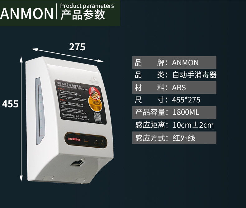 Anmon Антибактериальный автоматический индукционный спрей для рук, полностью автоматический