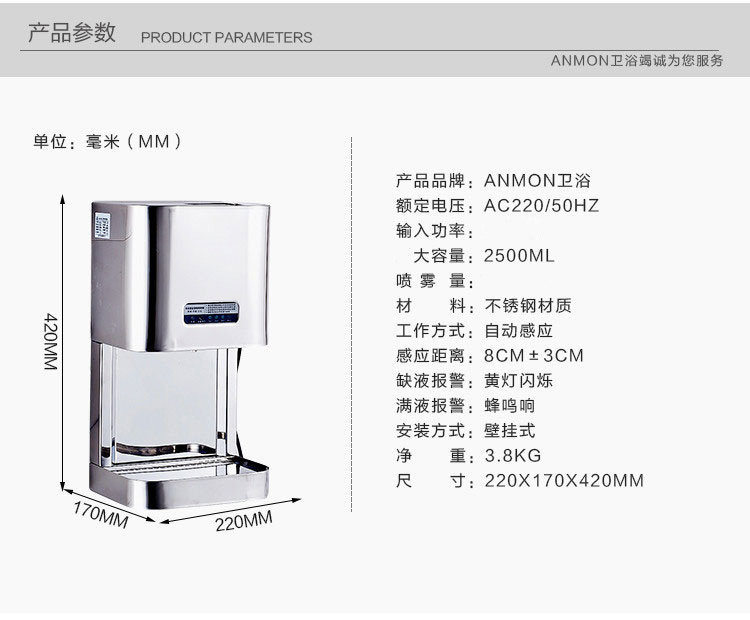 Anmon Антибактериальный автоматический динамичный индукционный спрей из нержавеющей стали, полностью автоматический