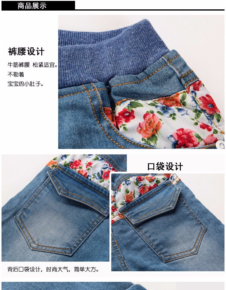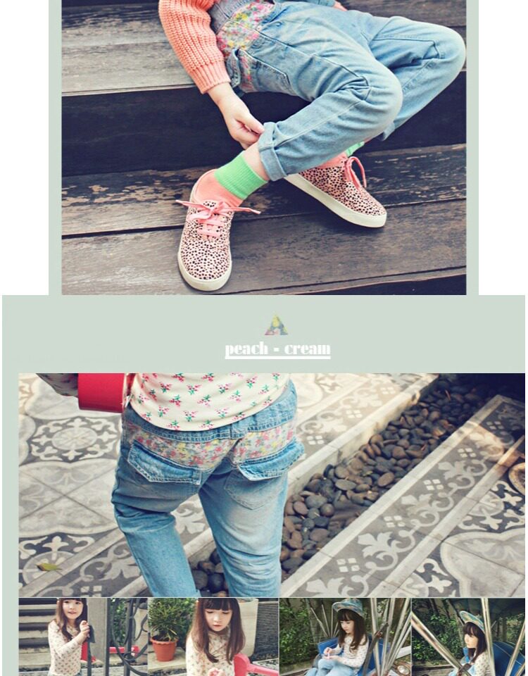 Осенние джинсы для отдыха, детские штаны, детская одежда, в корейском стиле, цветочный принт