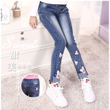 Джинсы для девочек, синие детские штаны, детская одежда, в обтяжку