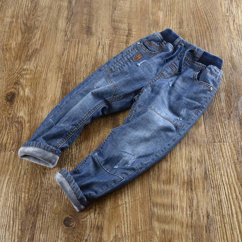Демисезонные детские штаны подходит для мужчин и женщин, хлопковые удерживающие тепло джинсы с начесом, подходят для подростков, свободный прямой крой