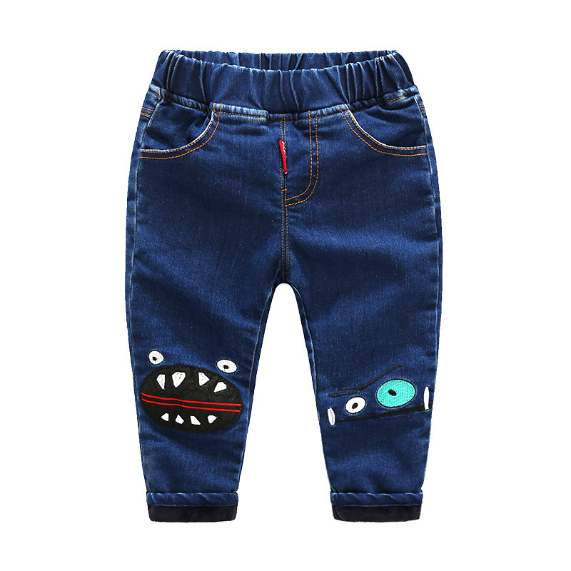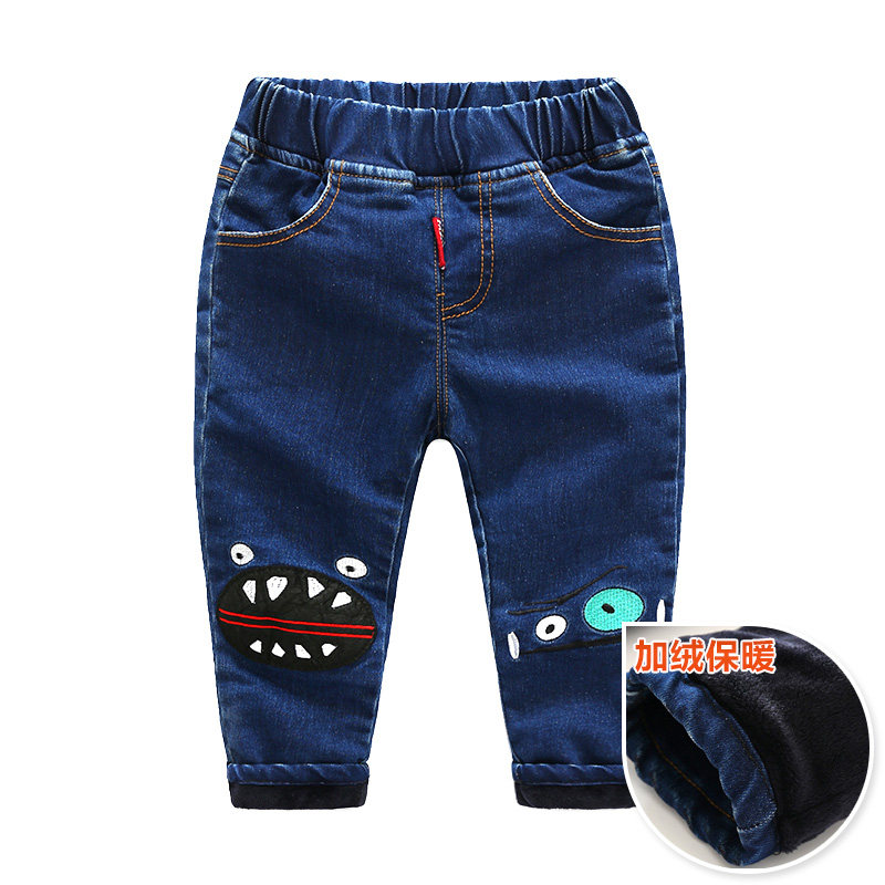 Детские зимние джинсы, штаны, пуховик, летняя одежда, увеличенная толщина, в корейском стиле