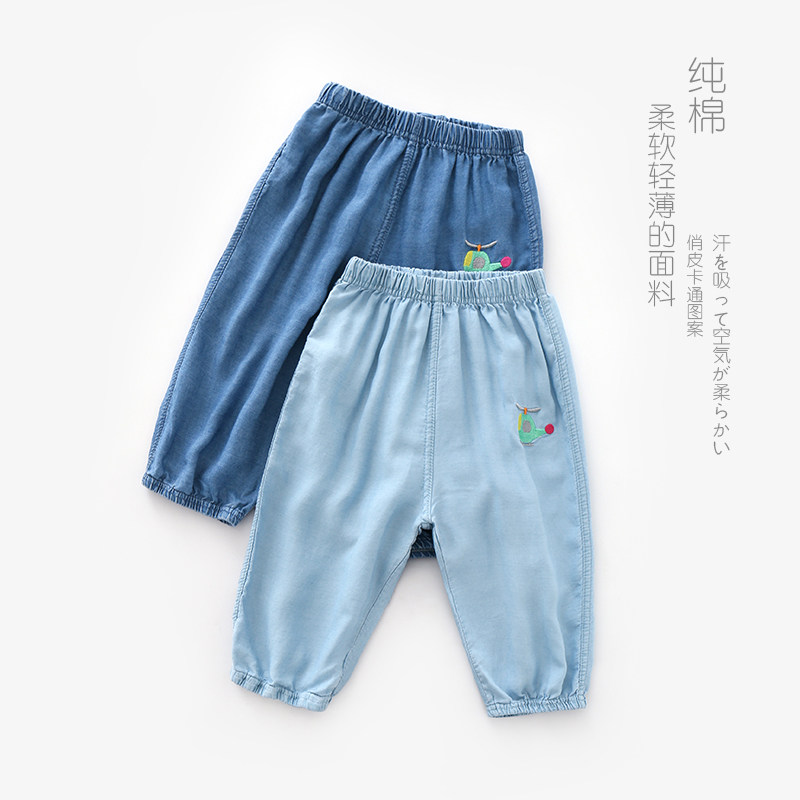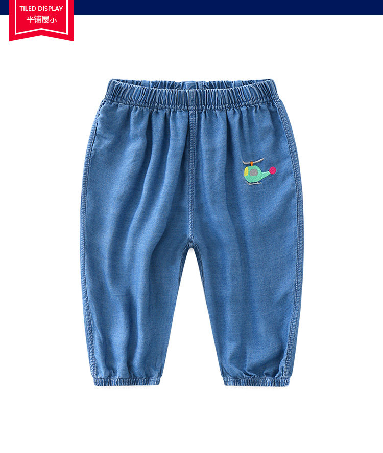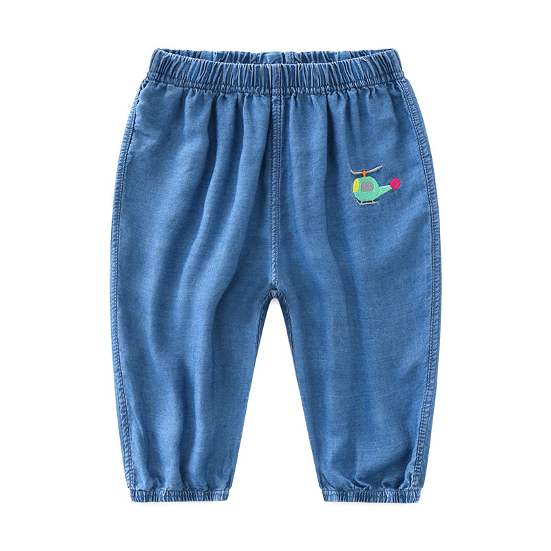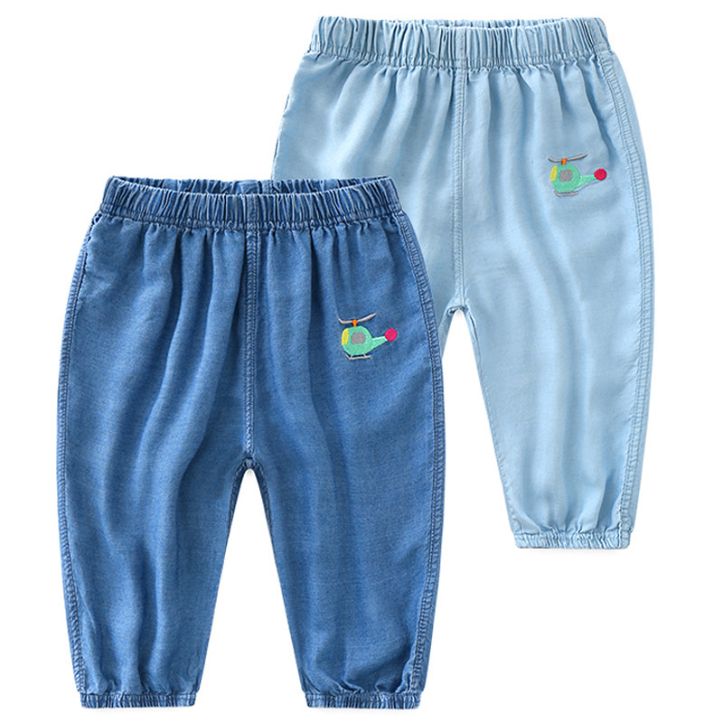 Детские летние джинсы, тонкие штаны, детское средство от комаров для мальчиков, фонарь, с вышивкой