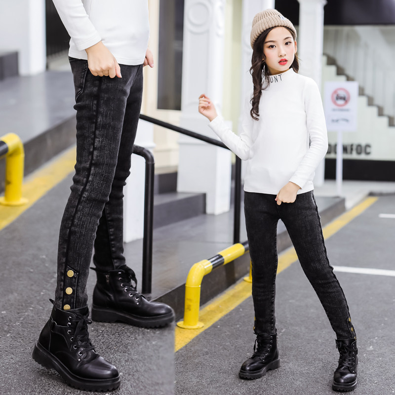Бархатные леггинсы, осенние эластичные детские штаны, весенние джинсы, подходит для подростков, облегающий крой