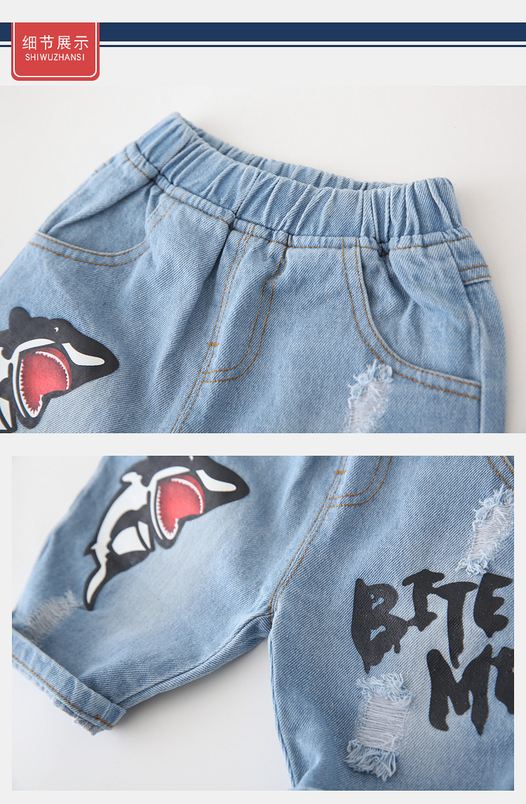 Летние детские джинсы для мальчиков, штаны, детская акула, шорты, коллекция 2022, в корейском стиле