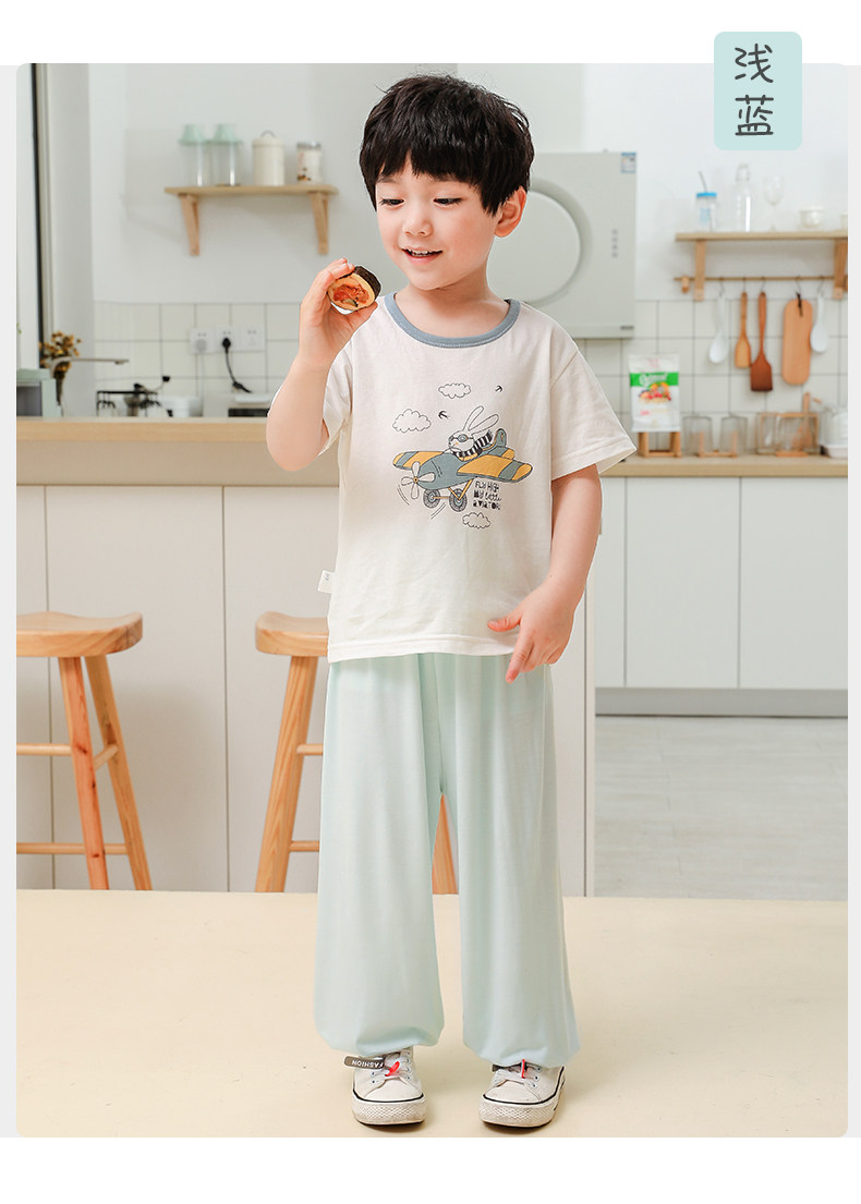 - Липкое волокно+спандекс-домашние брюки комаров светло-голубые
