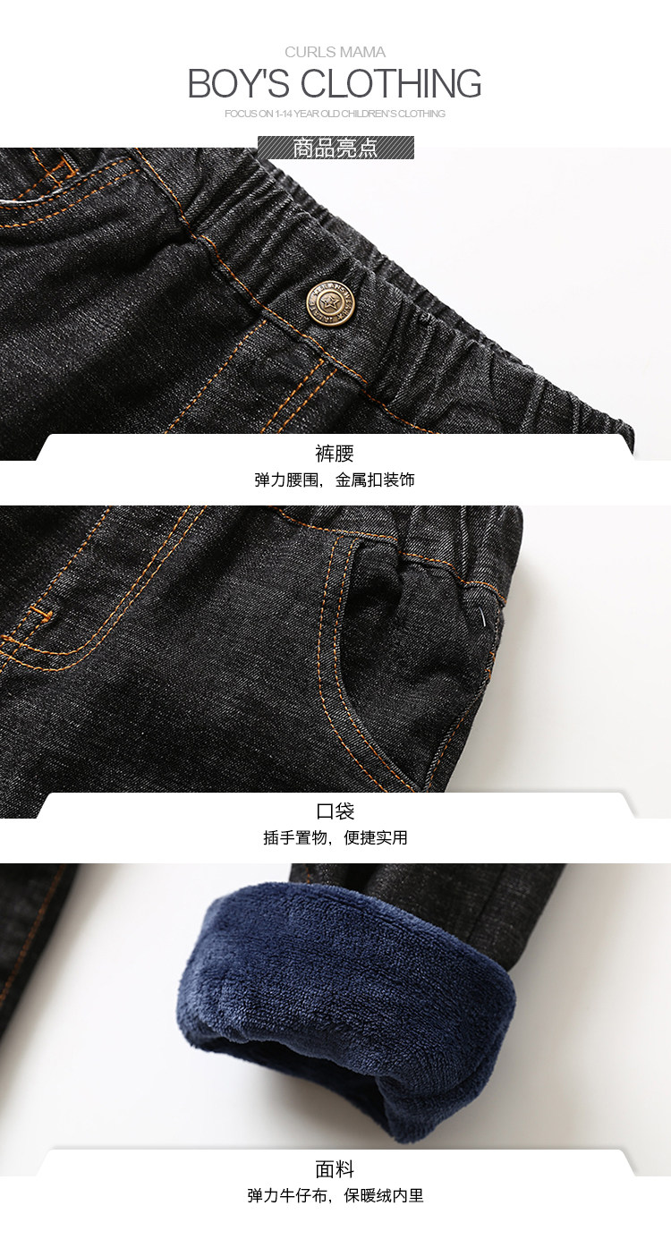 Мягкая ткань, эластичная мягкая пуля, джинсы с начесом для мальчиков, удерживающие тепло повседневные брюки, подходит для подростков
