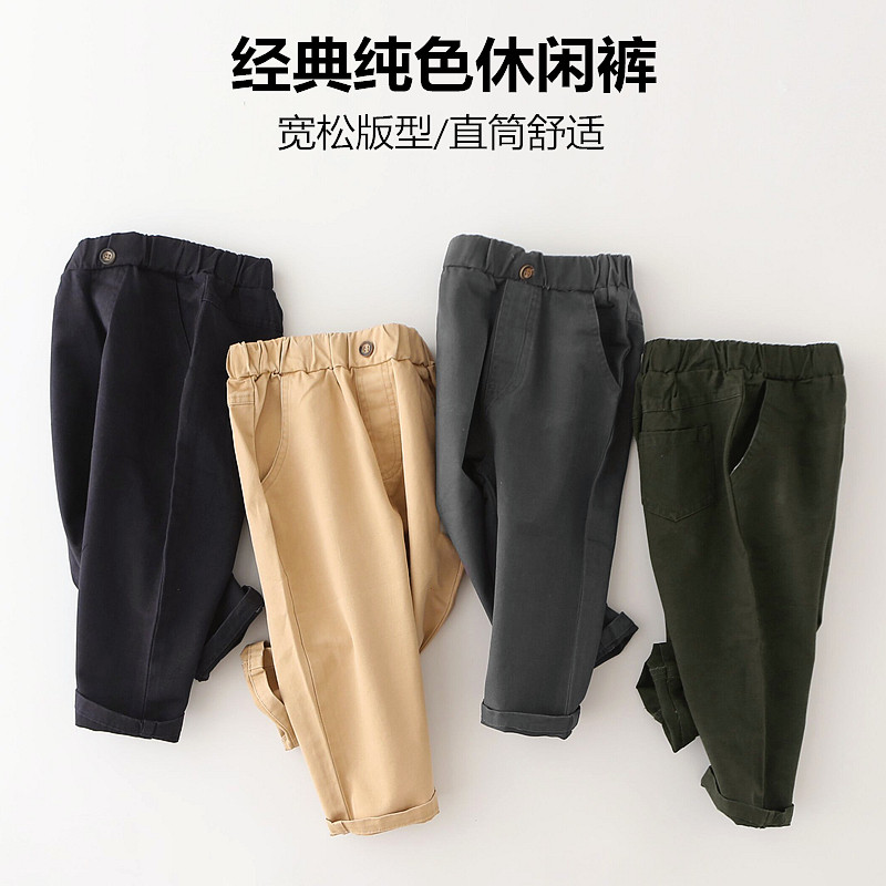 Однотонные осенние детские штаны для мальчиков, детская одежда, в корейском стиле, свободный прямой крой