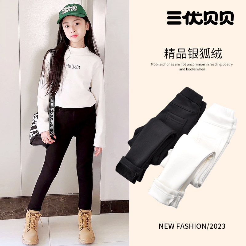 Леггинсы, демисезонные белые детские штаны, черный карандаш, увеличенная толщина, подходит для подростков