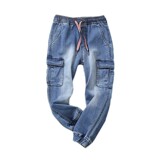 Осенние детские хлопковые трикотажные штаны, джинсы для мальчиков, подходят для подростков