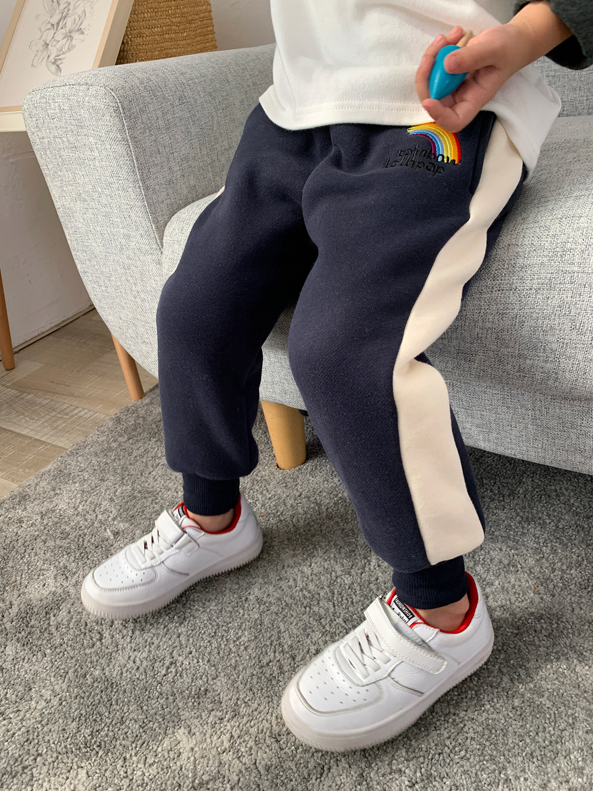 Пара детских теплых брюк из чистого хлопка и флиса на зиму.