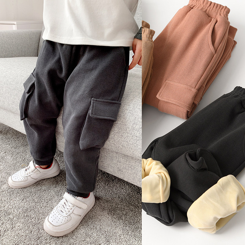 Детские хлопковые бархатные удерживающие тепло зимние штаны для мальчиков