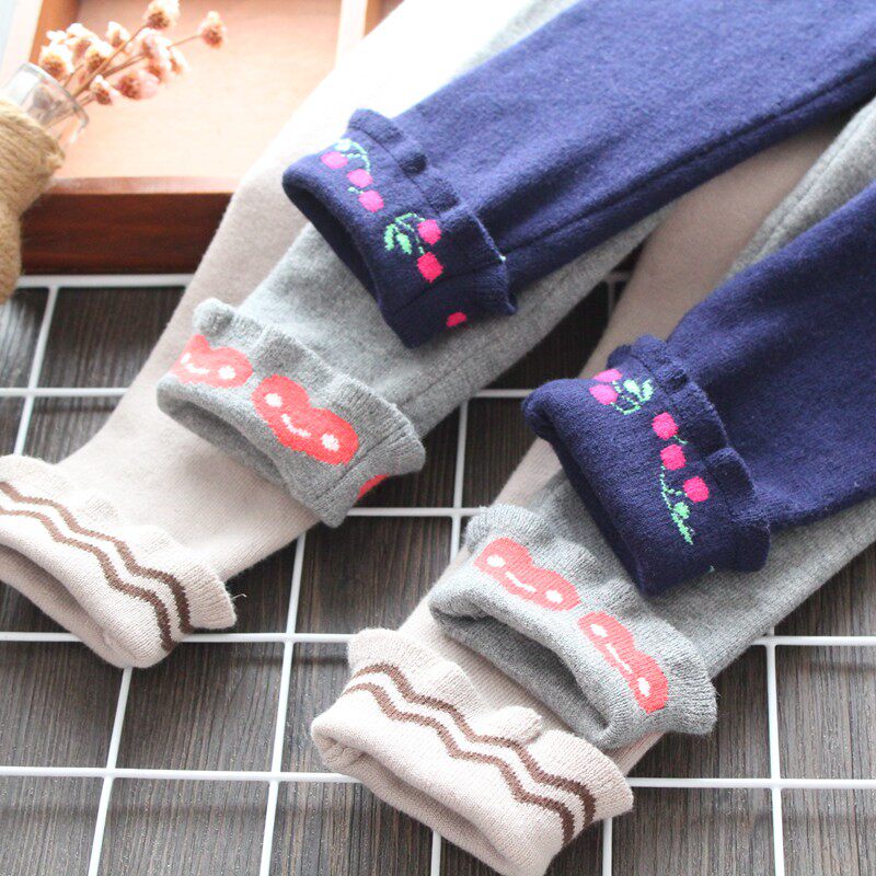Трикотажные хлопковые штаны, демисезонные шерстяные милые эластичные леггинсы, в корейском стиле, детская одежда