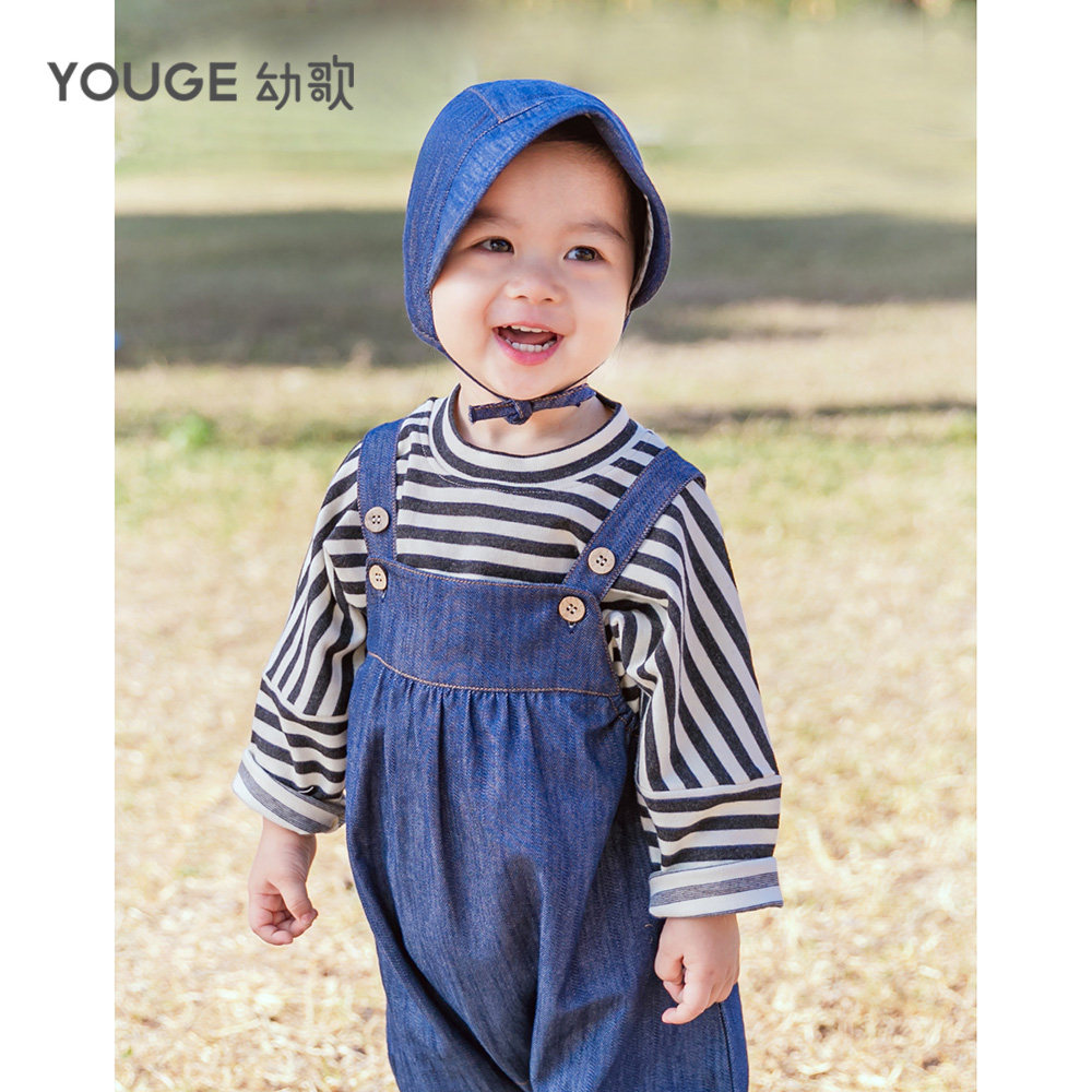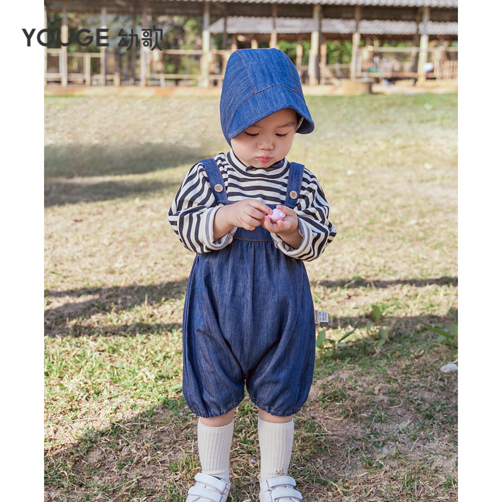 Осеннее боди подходит для мужчин и женщин, слинг, детский хлопковый джинсовый комбинезон для младенца для выхода на улицу, детская одежда