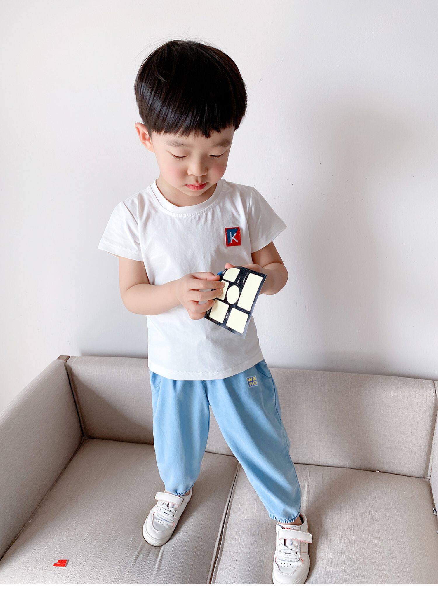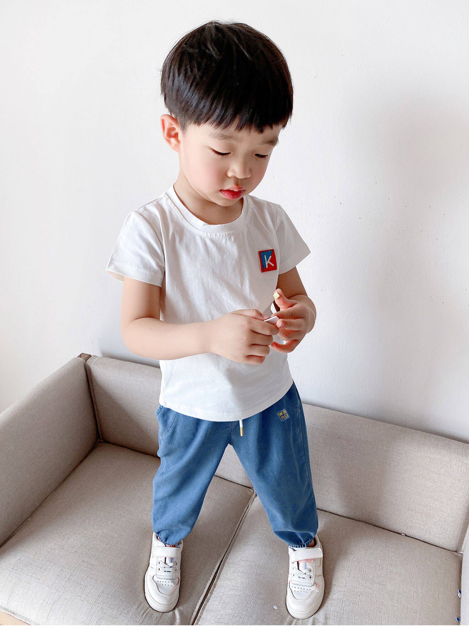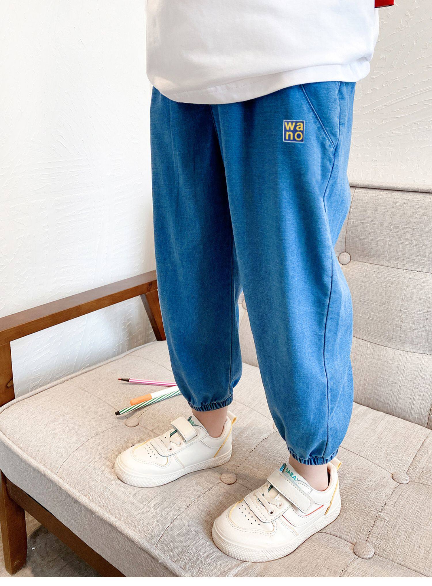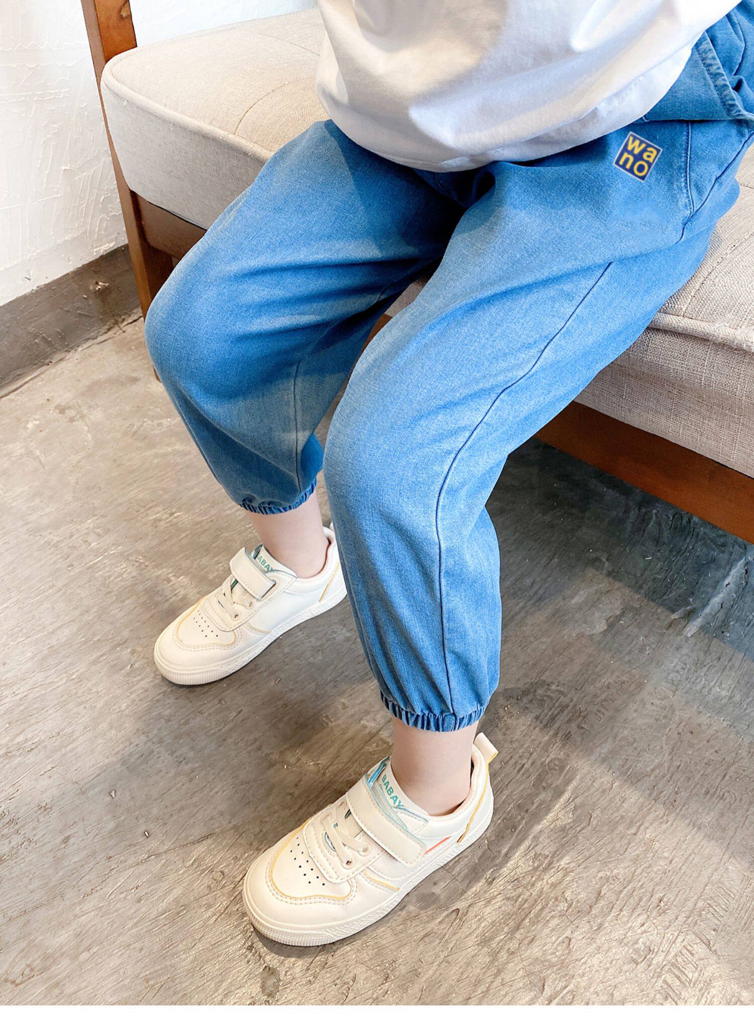 Купить товар Детские брюки с манжетами из лиоцелла, тонкие летние брюки для мальчиков и девочек, детей среднего и крупного возраста