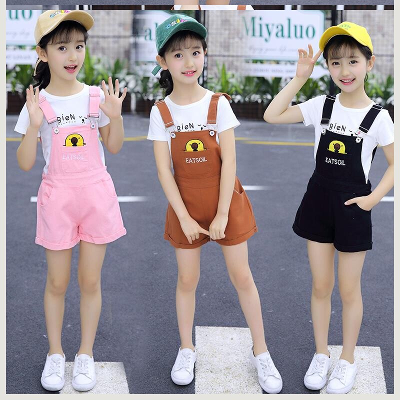 Летняя одежда, комплект, детские подтяжки, 2020, в корейском стиле, подходит для подростков, короткий рукав