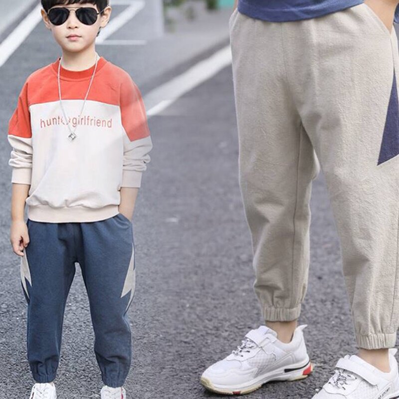 Случайные брюки для мальчиков и свободная весна и осень тонкая хлопковая корейская версия 2019 Новые дети среди детей длинных брюк xia yangqi