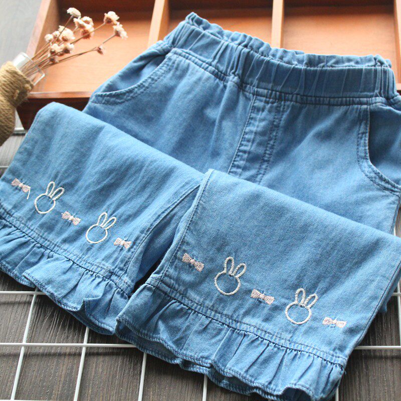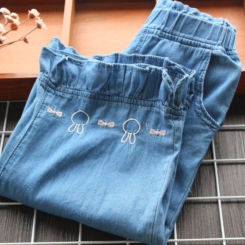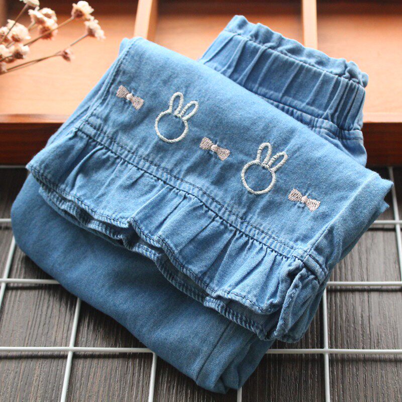 Летние ультратонкие штаны, средство от комаров, кролик, джинсы, с вышивкой