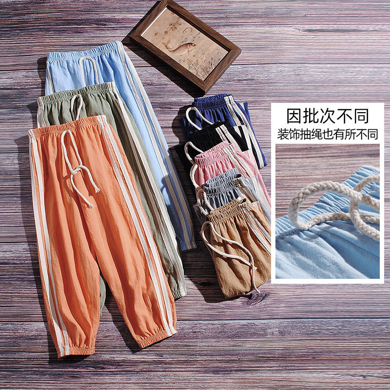 Средство от комаров, летние тонкие детские штаны, дышащая подсветка пола, фонарь, семейный стиль, из хлопка и льна, коллекция 2023, подходит для подростков