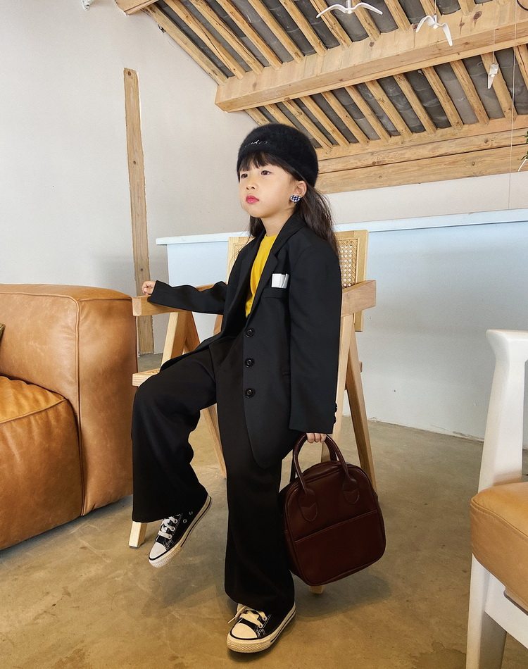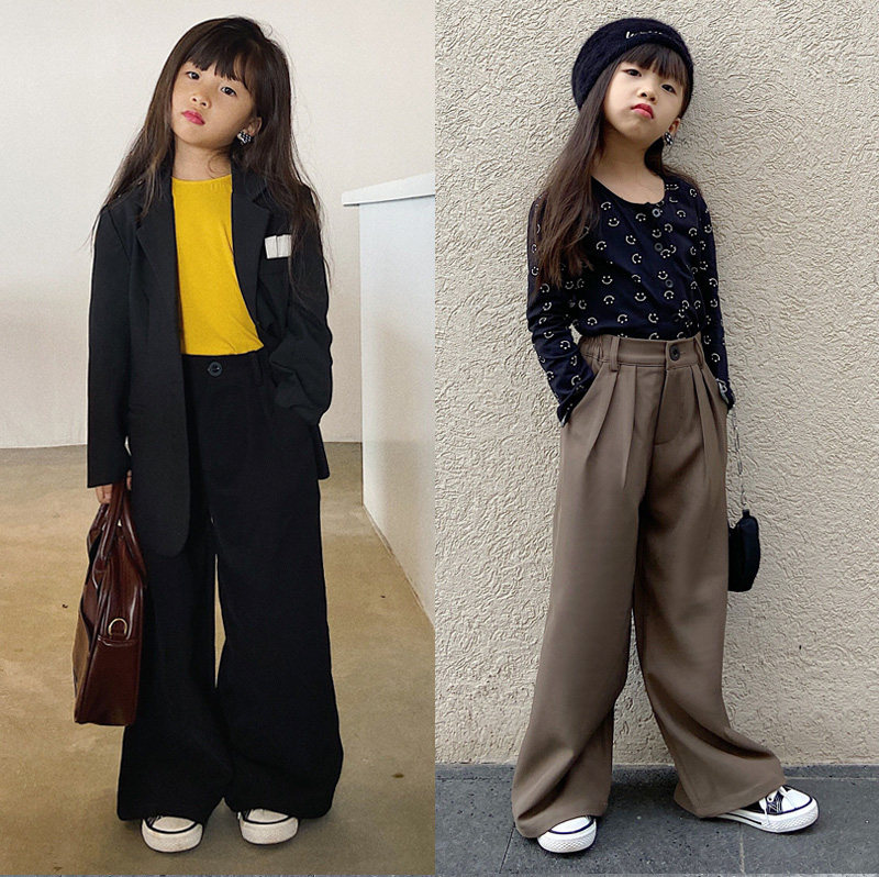 Детские черные штаны для отдыха, свободный прямой крой, в корейском стиле