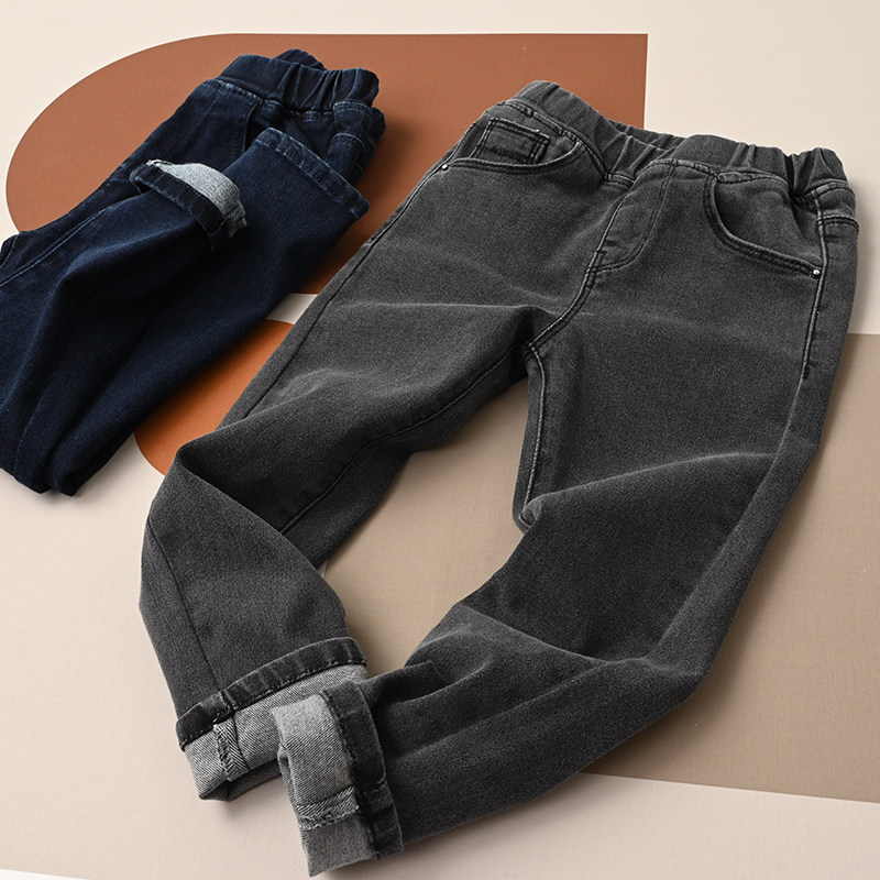 Мягкие джинсы для мальчиков, мягкая эластичная мягкая пуля, универсальные осенние штаны, подходит для подростков, детская одежда
