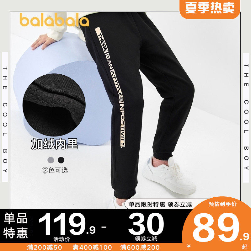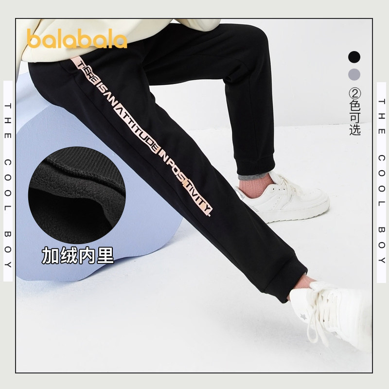 巴拉巴拉 Флисовые детские демисезонные штаны, подходит для подростков, увеличенная толщина, коллекция 2021, детская одежда