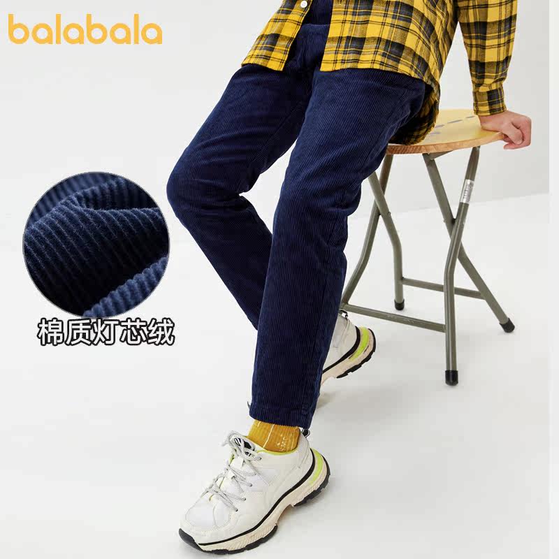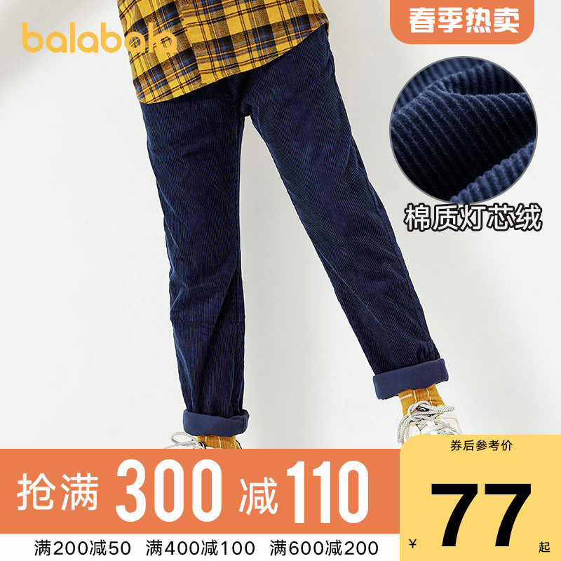 巴拉巴拉 Штаны для мальчиков, вельветовые детские джинсы с начесом, пуховик, коллекция 2021